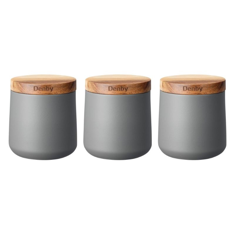 186014048 Denby Set Of 3 Grey Storage Canisters