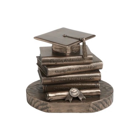 Topped with a graduation cap and accompanied by a rolled diploma, this sculpture makes an ideal gift for graduates, educators, or as a lasting memento of scholarly success.