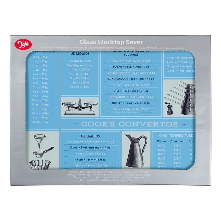 Our work top saver has small rubberised non-slip pads in each of the corners to protect surfaces. Made from high-quality extra-strong heat-resistant glass. Each work top saver measures 30 x 40 x 0.4cm.